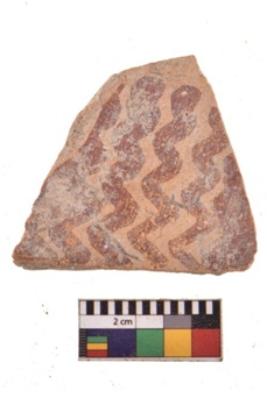 | Description / विवरण | Specimen of potsherd with decorative geometric painting. Type Black on Red Ware . |