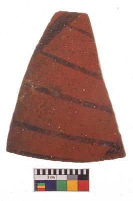| Description / विवरण | Specimen of potsherd with black decorative painting, Type Black on Red Ware . |