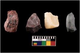 | Description / विवरण | Specimen of fluted cores showing impressions of blades removed from almost all the sides. |