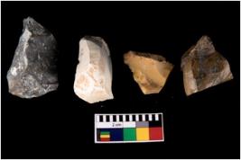 | Description / विवरण | Specimen of fluted cores showing impressions of blades removed from almost all the sides. |