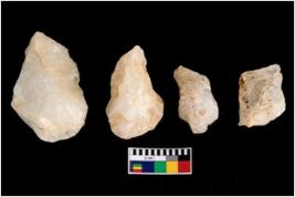| Description / विवरण | Specimen of a cores with few broad fluted marks. Some of them are tapering at one end. Few are with sharp edges. |