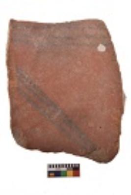| Description / विवरण | Specimen of black on red ware with decorative geometric Three oblique lines painting. |