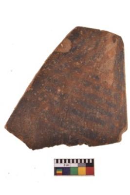 | Description / विवरण | Specimen of potsherd with decorative geometric painting. Type Black on Red Ware . |