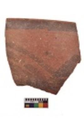 | Description / विवरण | Specimen of black on red ware with decorative geometric Its decorated with two horizontal bands with sets of triple arches painting. |
