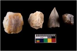 | Description / विवरण | Specimen of fluted cores showing impressions of blades removed from almost all the sides. |