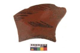 | Description / विवरण | Specimen of potsherd with black decorative geometric painting. |