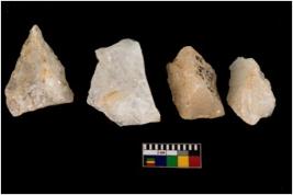 | Description / विवरण | Specimen of a cores with few broad fluted marks. Some of them are tapering at one end. Few are with sharp edges. |