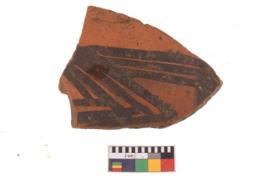 | Description / विवरण | Specimen of potsherd with black decorative geometric painting. |