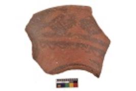 | Description / विवरण | Specimen of black on red ware with decorative geometric A row of latticed diamonds set in horizontal bands but having groups of oblique lines at intervals painting. |