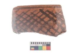 | Description / विवरण | Specimen of potsherd with black decorative geometric painting . |