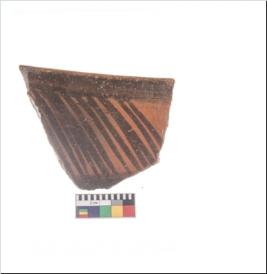 | Description / विवरण | Specimen of potsherd with black decorative geometric painting . |