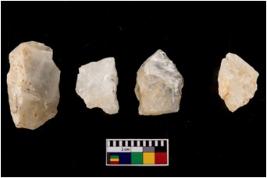 | Description / विवरण | Specimen of a cores with few broad fluted marks. Some of them are tapering at one end. Few are with sharp edges. |