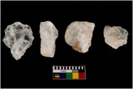 | Description / विवरण | Specimen of a cores with few broad fluted marks. Some of them are tapering at one end. Few are with sharp edges. |