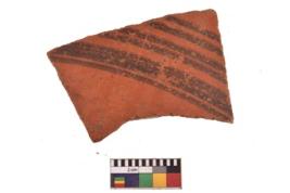 | Description / विवरण | Specimen of potsherd with decorative geometric painting. Type Black on Red Ware . |