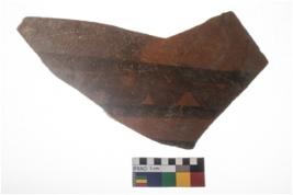 | Description / विवरण | Specimen of potsherd with black decorative geometric painting . |