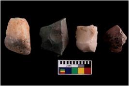 | Description / विवरण | Specimen of fluted cores showing impressions of blades removed from almost all the sides. |