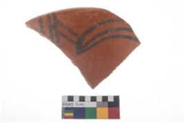 | Description / विवरण | Specimen of potsherd with black decorative geometric painting . |