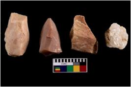 | Description / विवरण | Specimen of fluted cores showing impressions of blades removed from almost all the sides. |