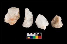 | Description / विवरण | Specimen of a cores with several broad fluted marks. Some of them are tapering at one end. |