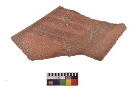 | Description / विवरण | Specimen of black on red ware with decorative geometric Groups of oblique strokes set in horizontal bands on the exterior painting. |