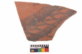 | Description / विवरण | Specimen of potsherd with black decorative geometric painting, Type Black on Red Ware . |