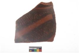 | Description / विवरण | Specimen of potsherd with black decorative geometric painting . |