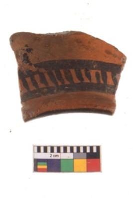| Description / विवरण | Specimen of potsherd with black decorative geometric painting. |