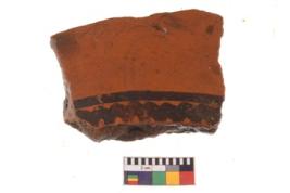 | Description / विवरण | Specimen of potsherd with black decorative geometric painting. |