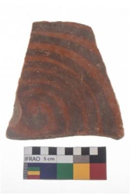 | Description / विवरण | Specimen of potsherd with black decorative geometric painting . |
