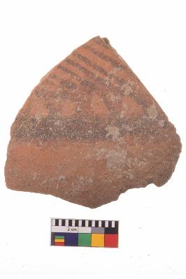 | Description / विवरण | Specimen of potsherd with black decorative geometric Linear painting, Type Black on Red Ware . |