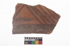 | Description / विवरण | Specimen of potsherd with black decorative geometric painting . |