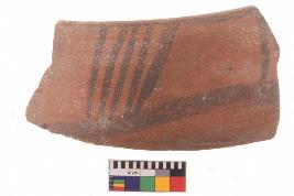 | Description / विवरण | Specimen of potsherd with black decorative geometric Linear painting, Type Black on Red Ware . |