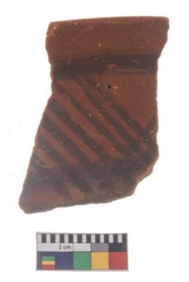 | Description / विवरण | Specimen of potsherd with black decorative geometric painting . |