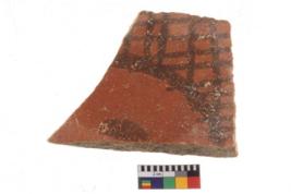 | Description / विवरण | Specimen of potsherd with decorative geometric painting. Type Black on Red Ware . |