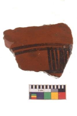 | Description / विवरण | Specimen of potsherd with black decorative geometric painting. |
