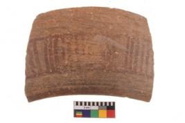 | Description / विवरण | Specimen of Red on red ware potsherd with having red decorative geometric painting of lines. . |