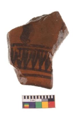 | Description / विवरण | Specimen of potsherd with black decorative geometric painting. |