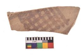 | Description / विवरण | A specimen of a potsherd. It is reddish in colour with black decorative geometric painting on it. |