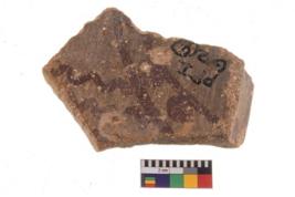 | Description / विवरण | Specimen of potsherd with decorative geometric painting. Type Black on Red Ware . |