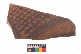 | Description / विवरण | Specimen of potsherd with black decorative geometric Net Pattern painting, Type Black on Red Ware . |
