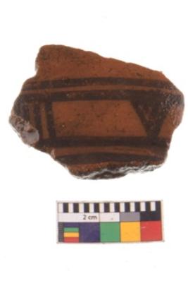 | Description / विवरण | Specimen of potsherd with black decorative geometric painting. |