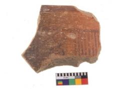 | Description / विवरण | Specimen of potsherd with decorative geometric painting. Type Black on Red Ware . |