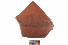 | Description / विवरण | Specimen of potsherd with black decorative painting, Type Black on Red Ware . |