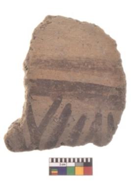 | Description / विवरण | Specimen of black on red ware with black decorative Parallel lines geometric painting. |