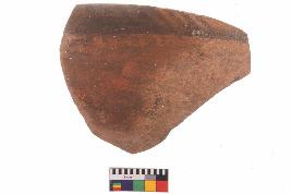 | Description / विवरण | Specimen of potsherd with black decorative geometric Linear painting, Type Black on Red Ware . |