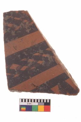 | Description / विवरण | Specimen of potsherd with black decorative geometric Net Pattern painting, Type Black on Red Ware . |