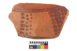 | Description / विवरण | Specimen of potsherd with decorative geometric painting. Type Black on Red Ware . |