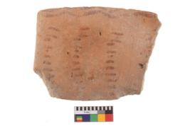 | Description / विवरण | Specimen of potsherd with decorative geometric painting. Type Black on Red Ware . |