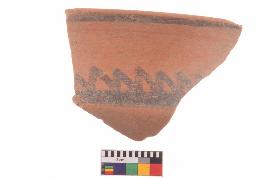 | Description / विवरण | Specimen of potsherd with black decorative zigzag painting, Type Black on Red Ware . |