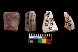 | Description / विवरण | Specimen of fluted cores showing impressions of blades removed from almost all the sides. |